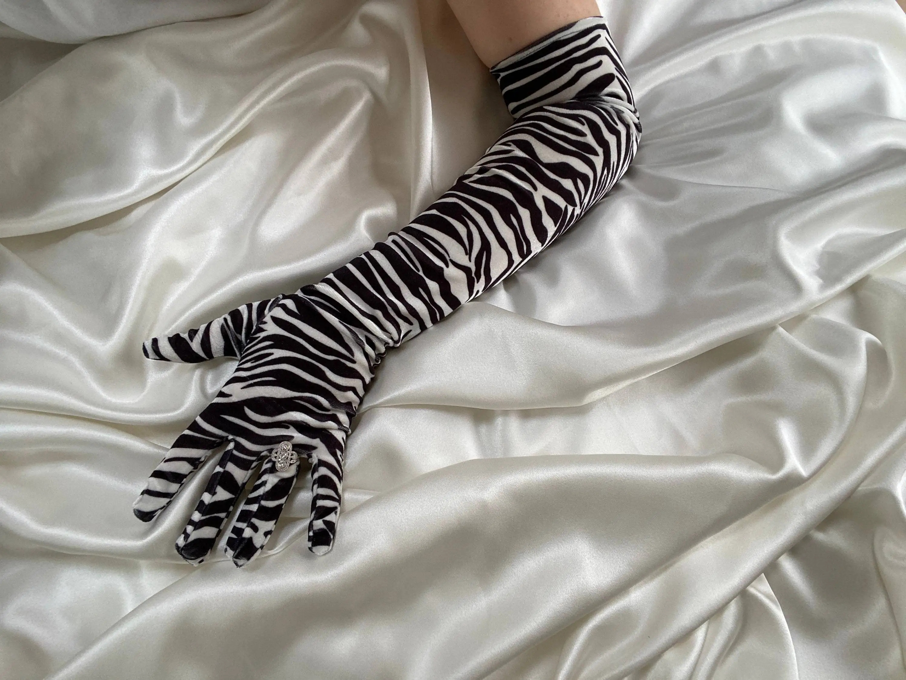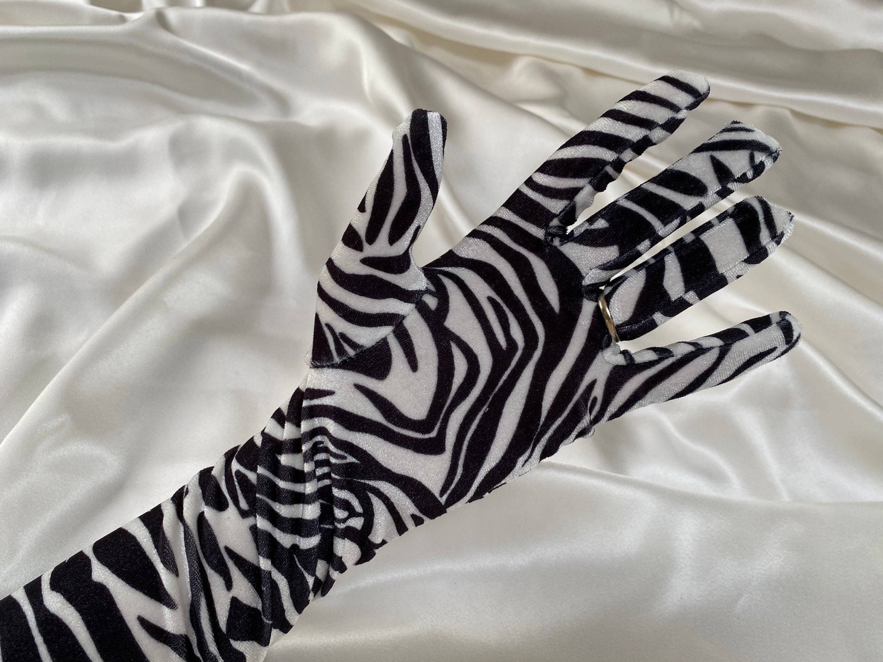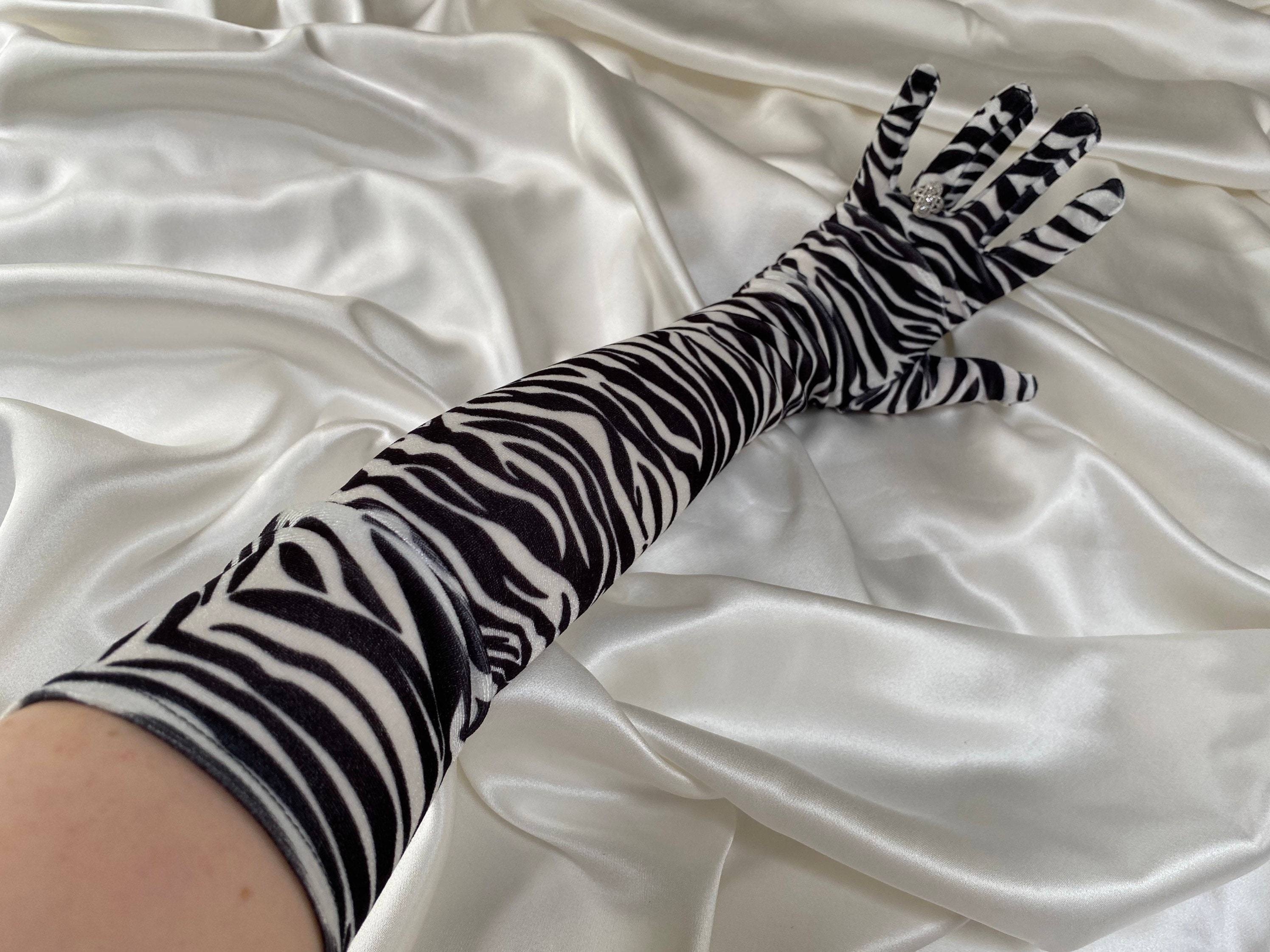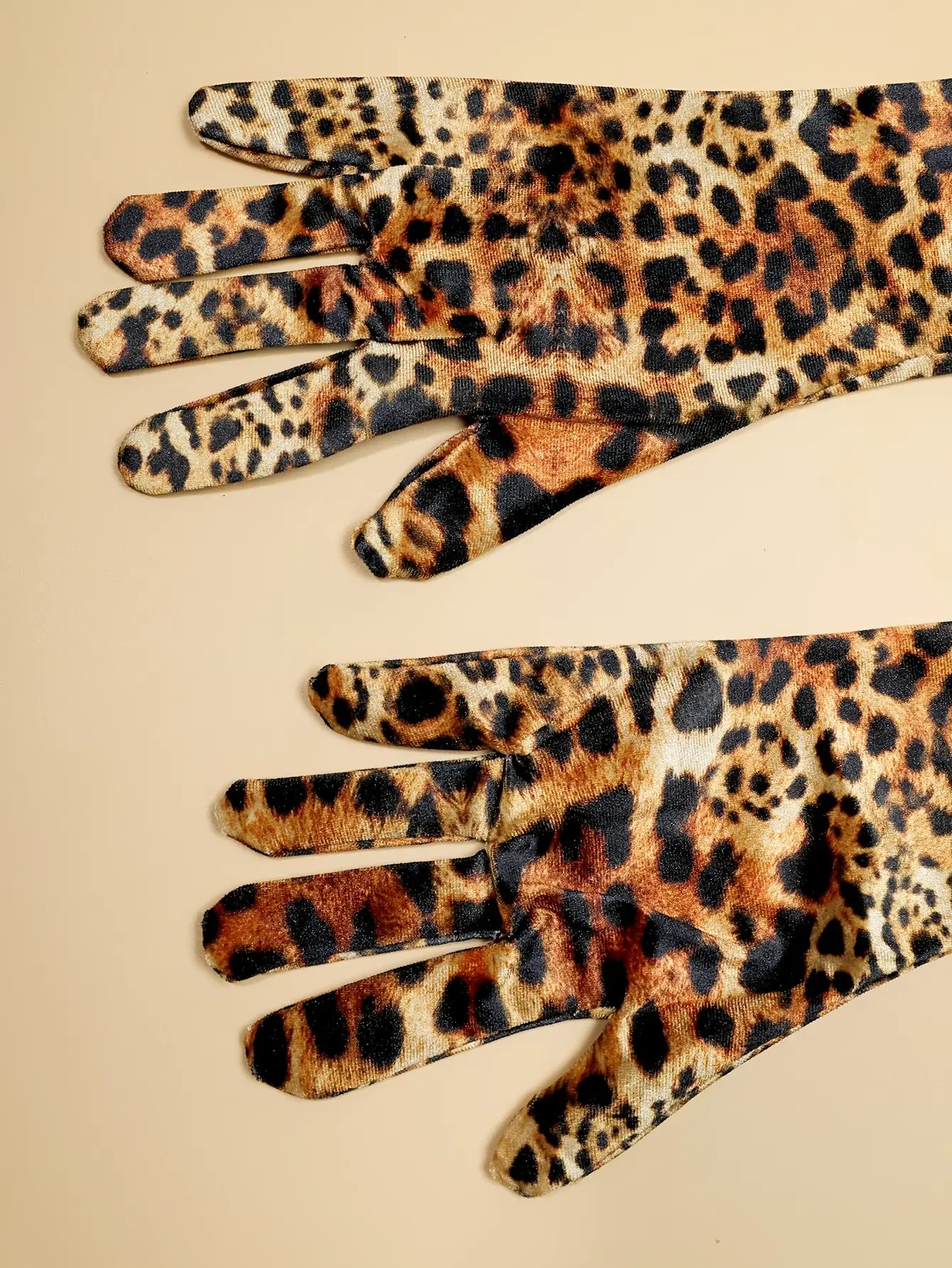 1 Pair YZNT Women'S Leopard Print Velvet Long Gloves - Stretchy Polyester, Machine Washable, Bold Animal Pattern for Parties, Performances & Evening Wear, Elegant Design with Black & Brown Leopard Print, Party Accessories, Pe