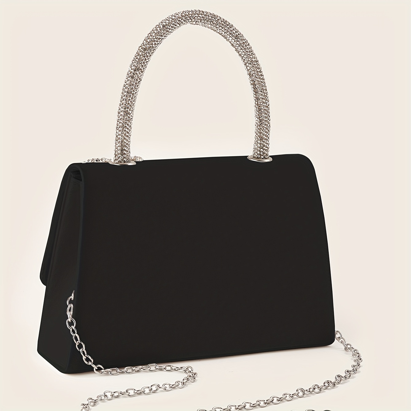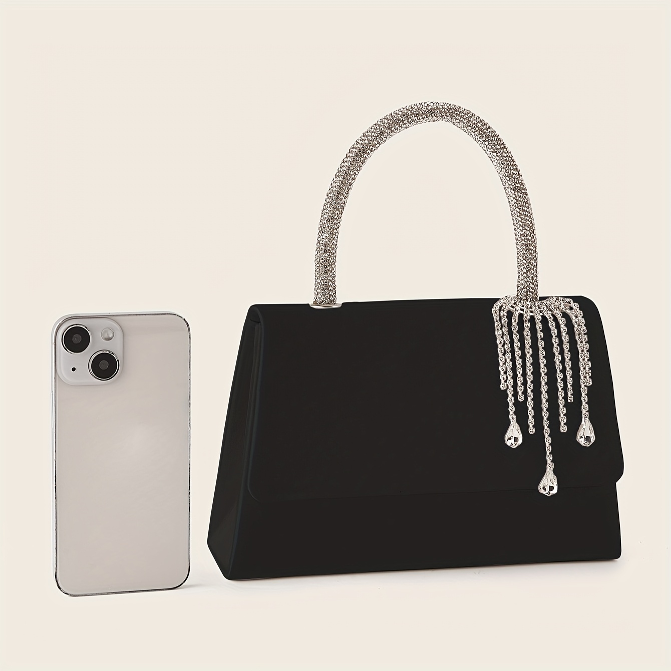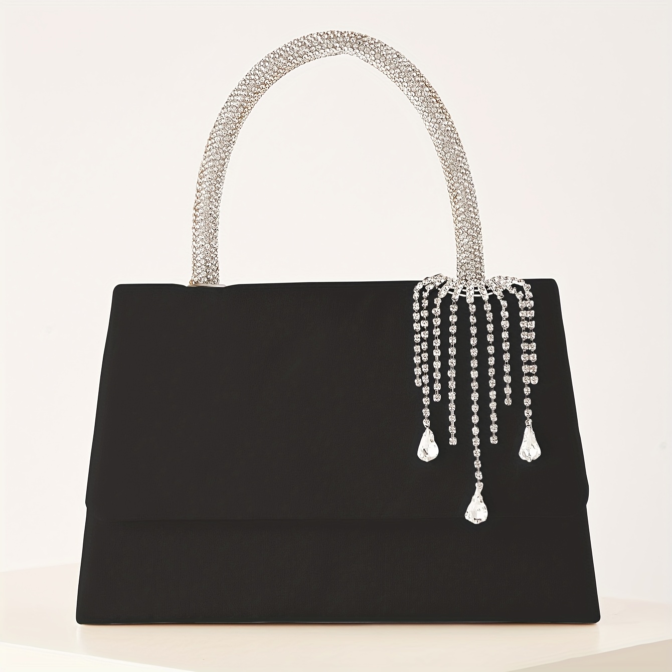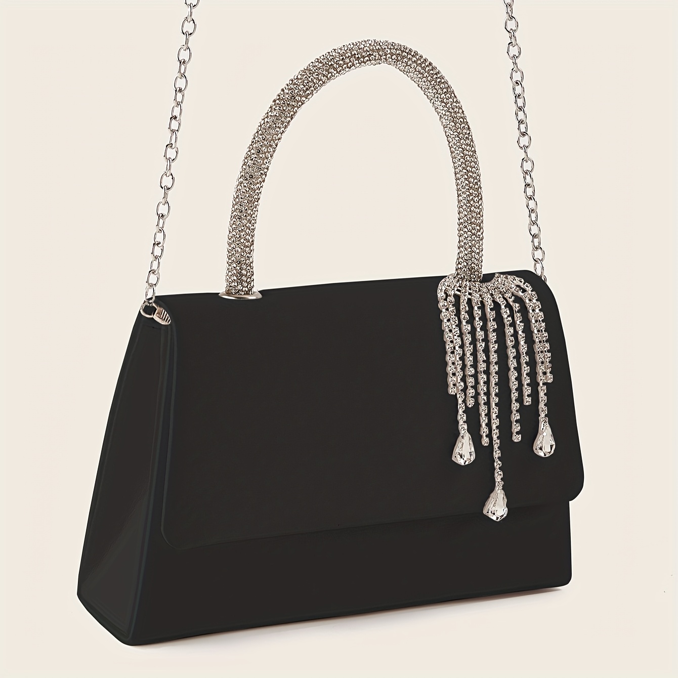 1pc Elegant Rhinestone Pendant Women'S Party Clutch, a Glorious Solid Color Rhinestone Handle Women'S Handbag, with a Hidden Card Pocket Compartment, a Perfect Women'S Wallet Featuring a Detachable Metal Chain, a Single Shoul