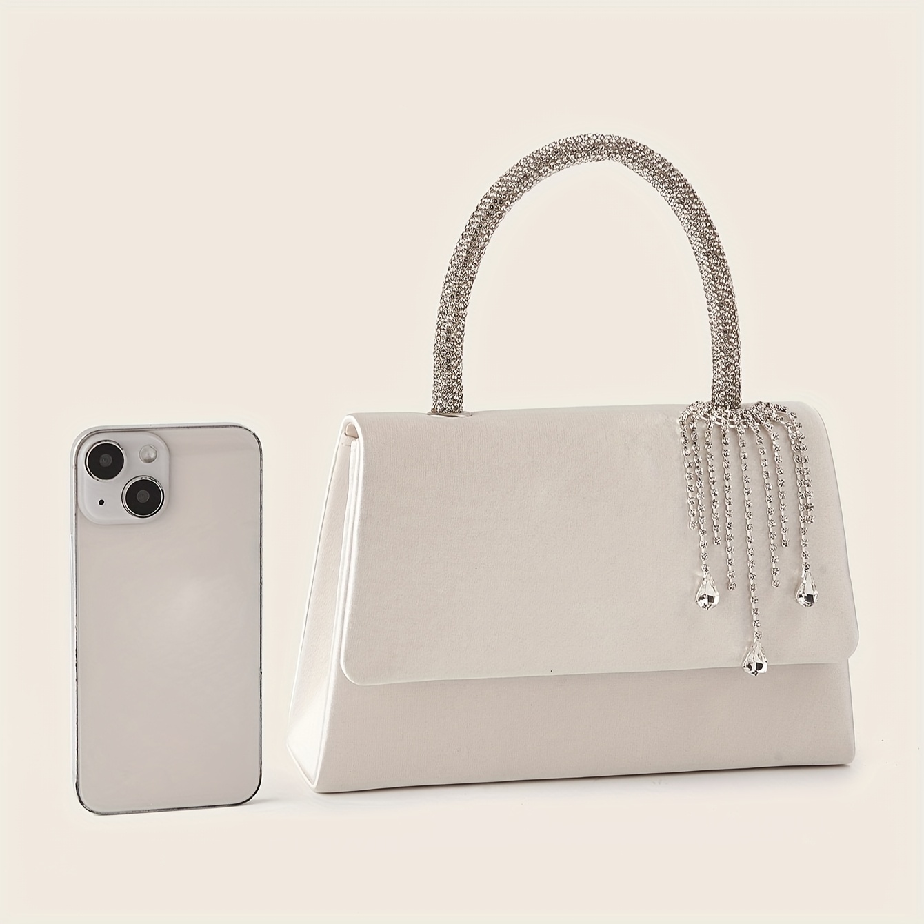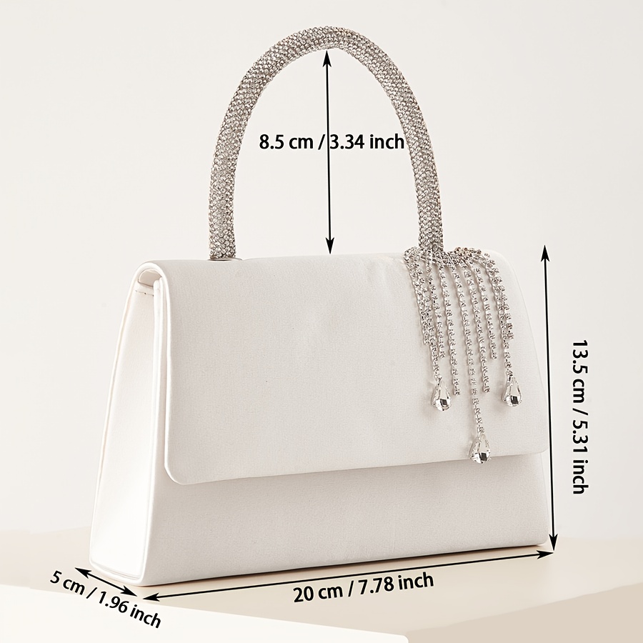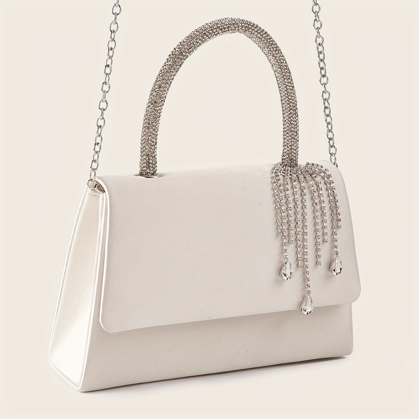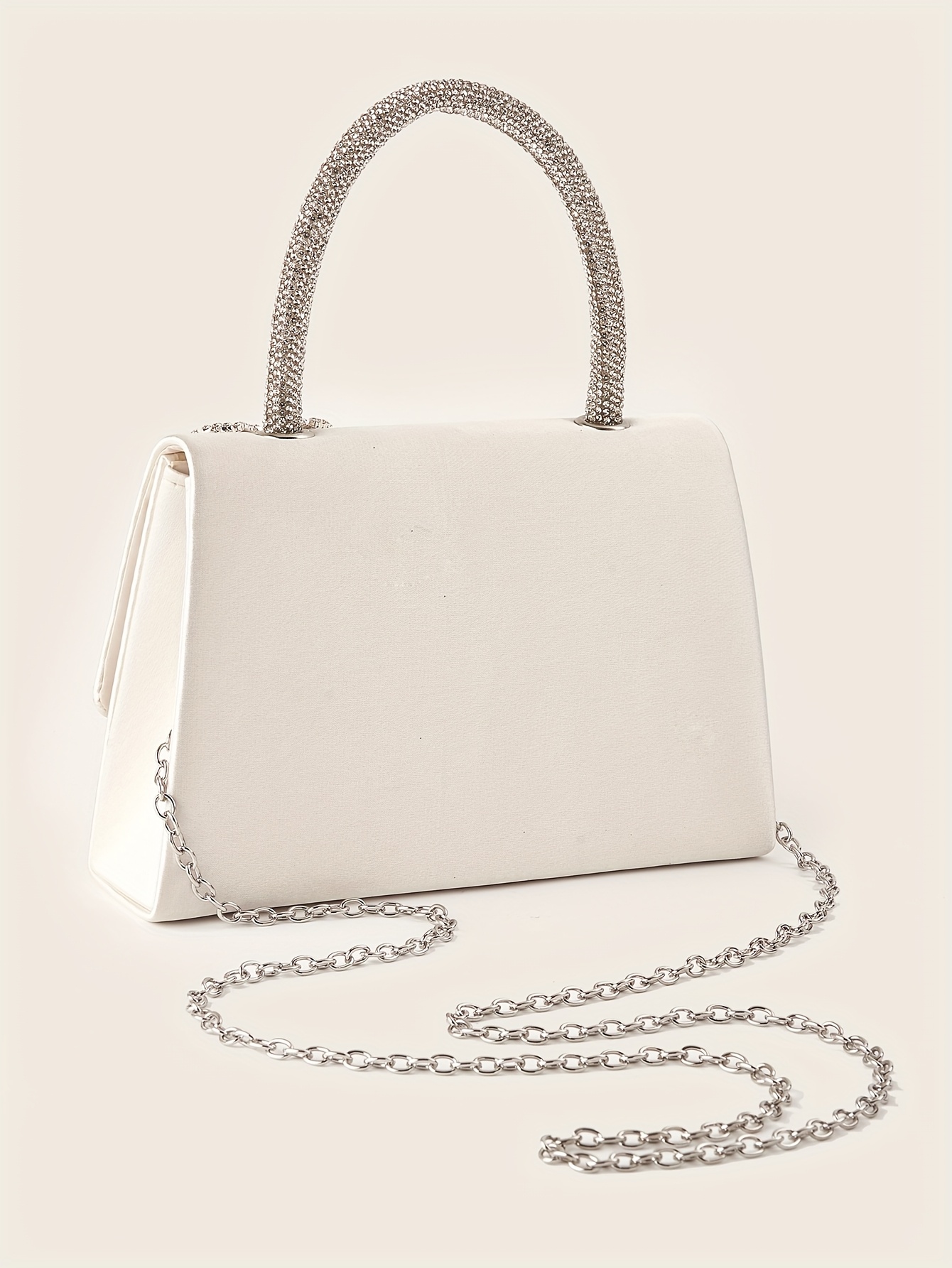 1pc Elegant Rhinestone Pendant Women'S Party Clutch, a Glorious Solid Color Rhinestone Handle Women'S Handbag, with a Hidden Card Pocket Compartment, a Perfect Women'S Wallet Featuring a Detachable Metal Chain, a Single Shoul