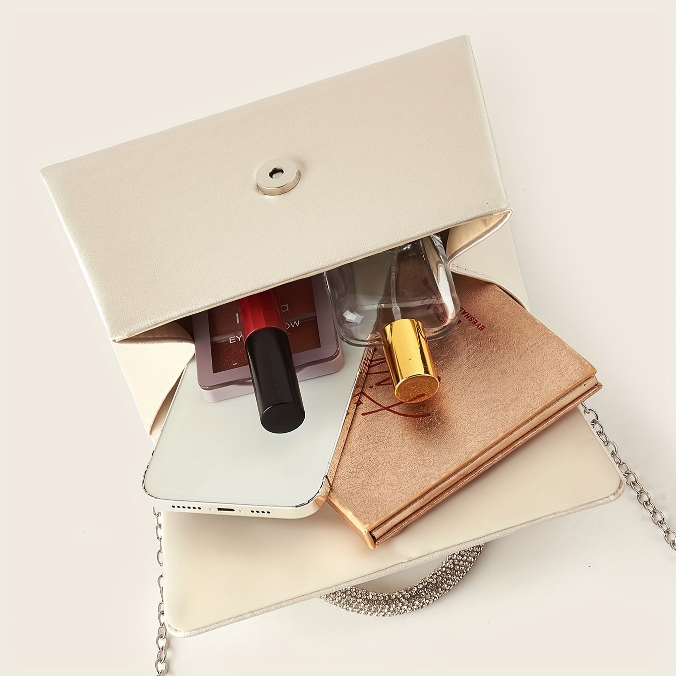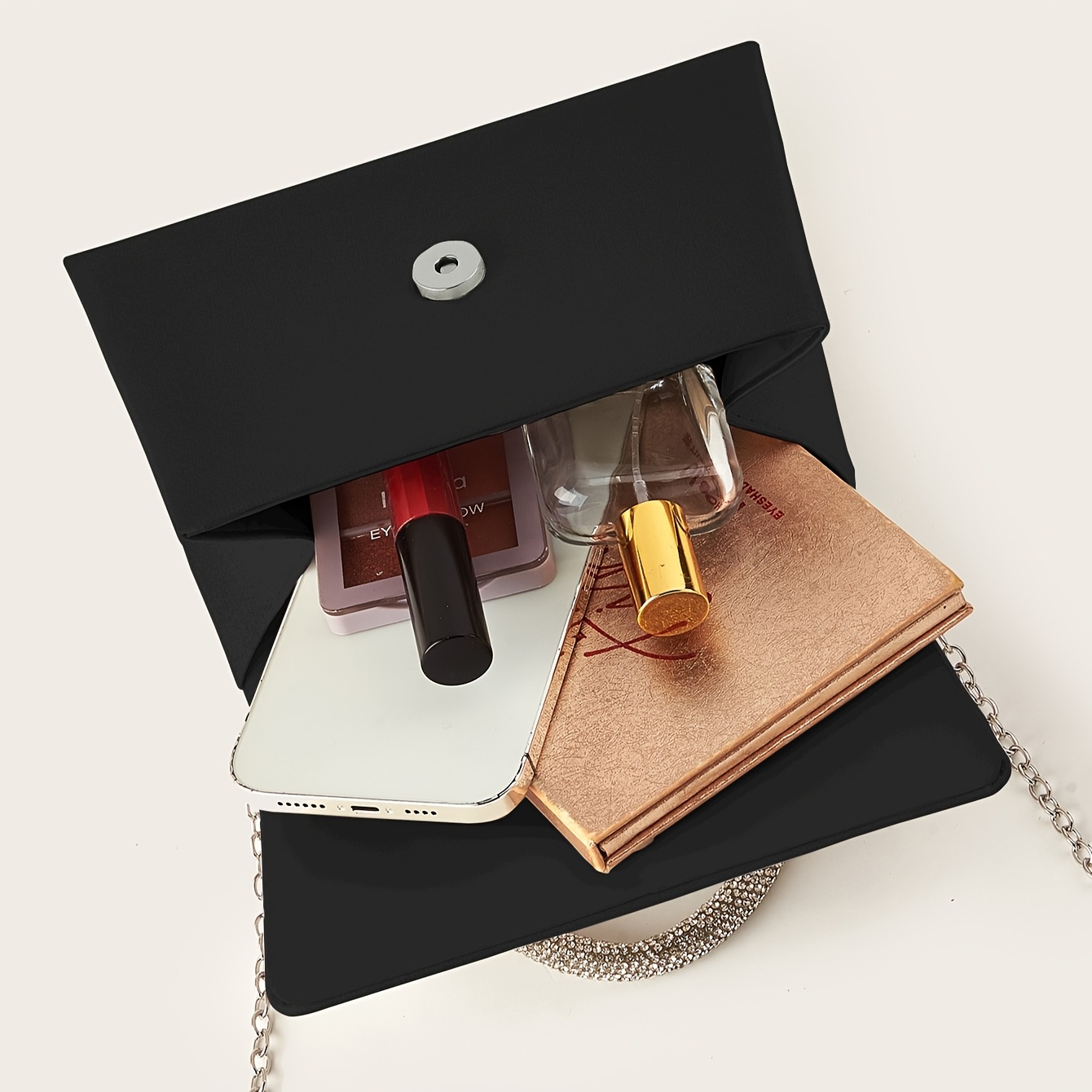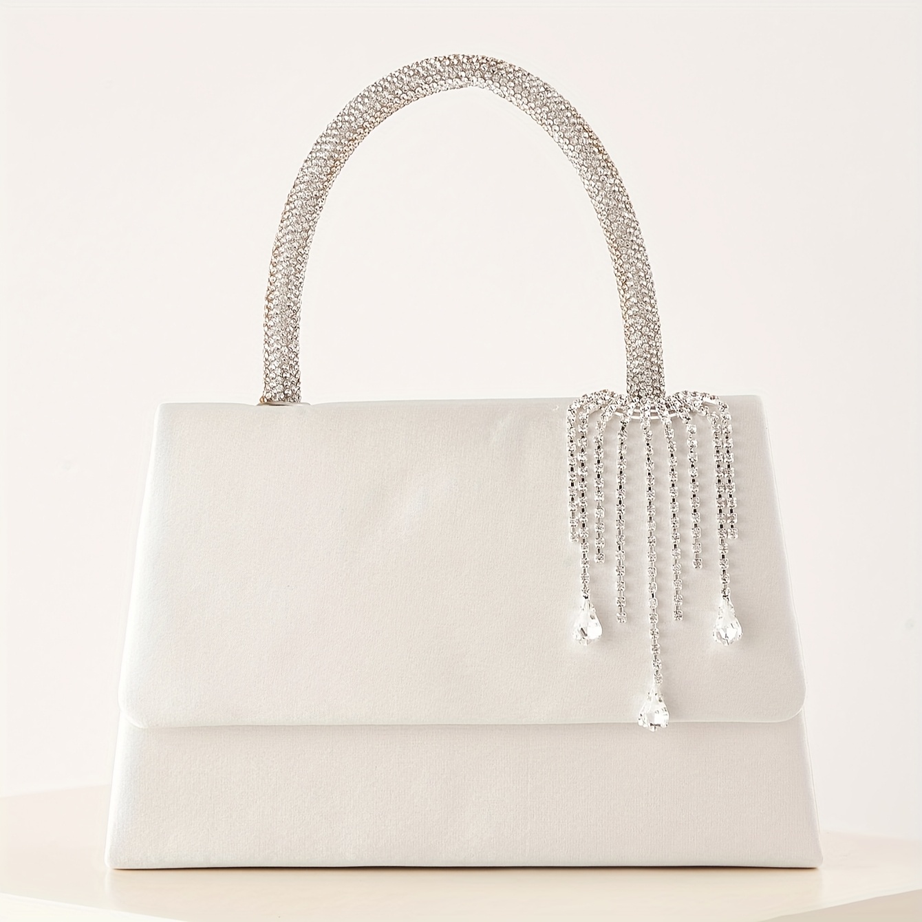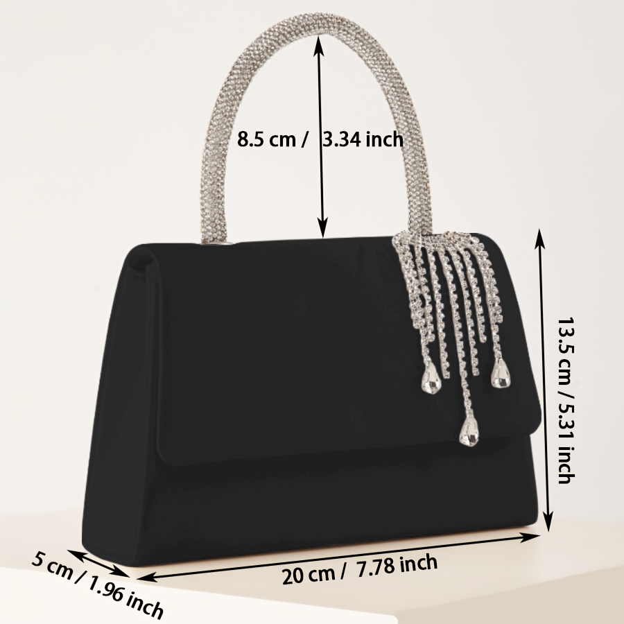 1pc Elegant Rhinestone Pendant Women'S Party Clutch, a Glorious Solid Color Rhinestone Handle Women'S Handbag, with a Hidden Card Pocket Compartment, a Perfect Women'S Wallet Featuring a Detachable Metal Chain, a Single Shoul