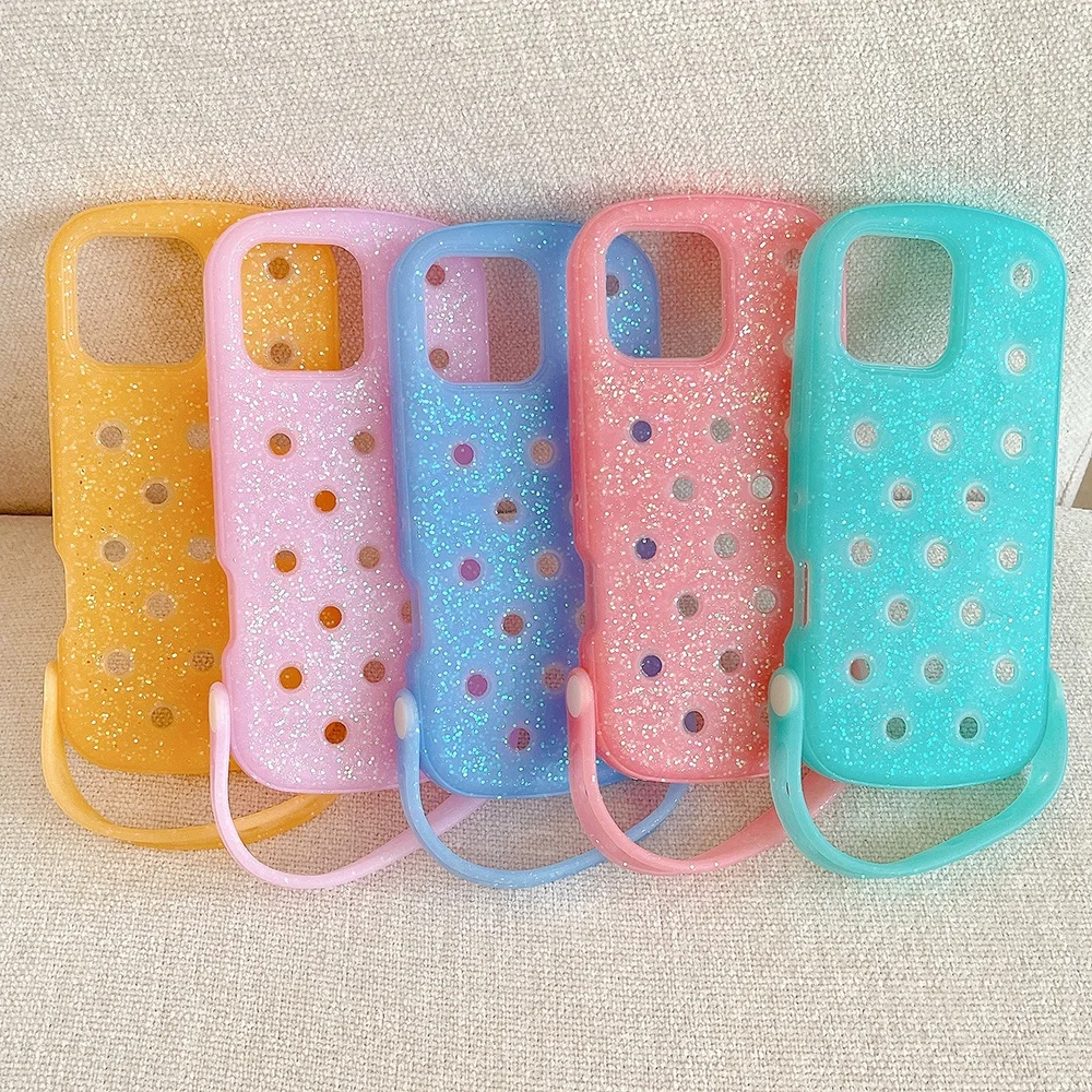coque telephone chaussure crocs, DIY Soft Silicone For Crocs Charms Phone Case For iPhone 17 16 15 14 13 12 11 Pro Max X XS Plus Candy Color Breathable Cover