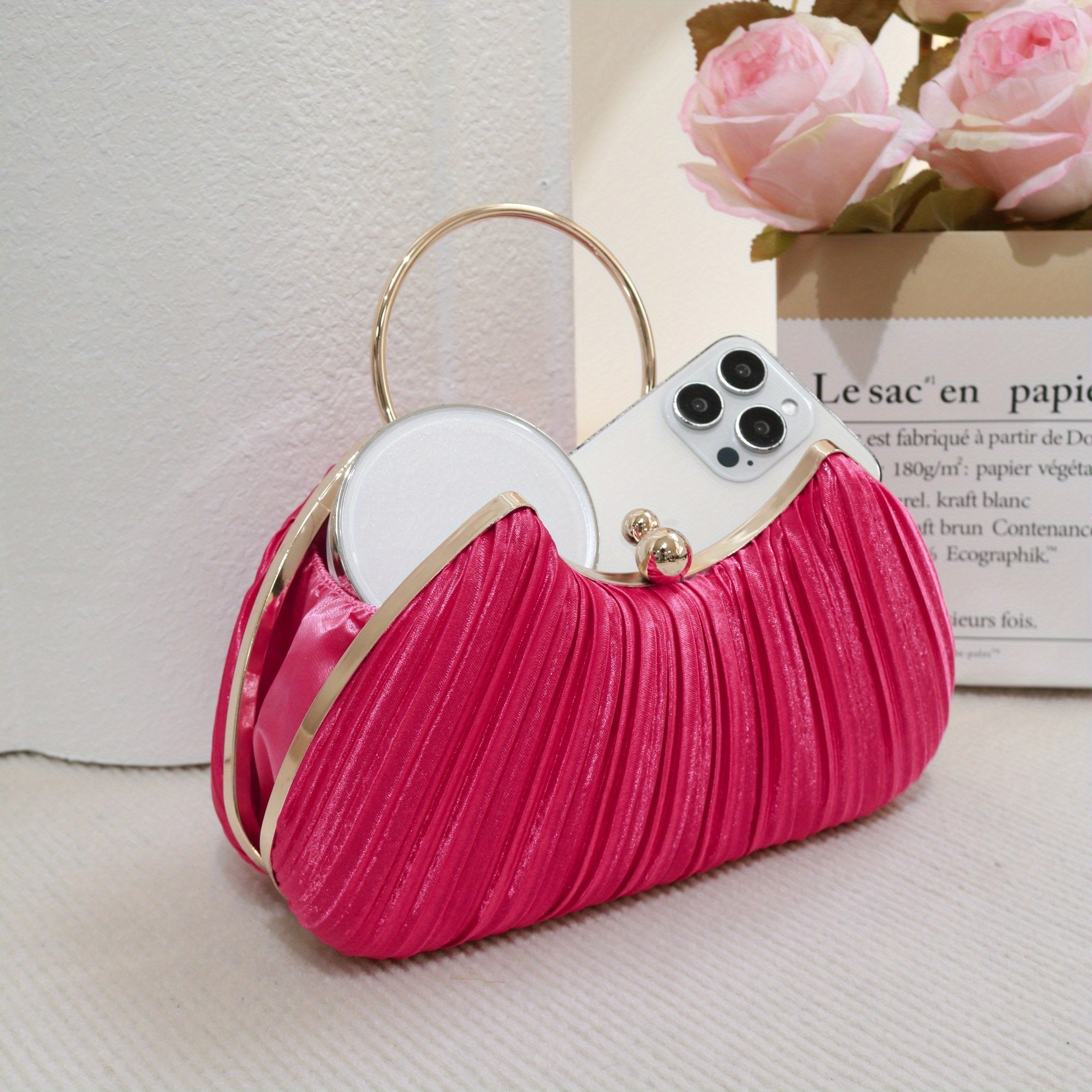 Women's Elegant Evening Handbag & Crossbody Bag - with Detachable Strap, Glossy PU Evening Purse, Snap Closure Closure for Wedding, Party, Everyday - Bright Pink/Burgundy Luxury Ladies Clutch, Party Accessory, Details, Refine