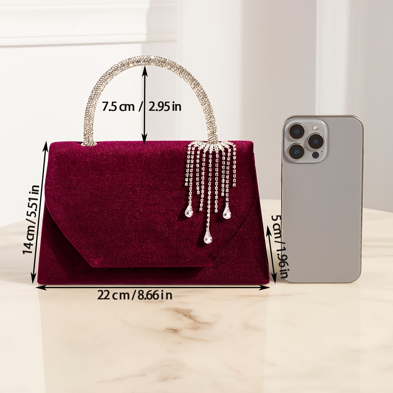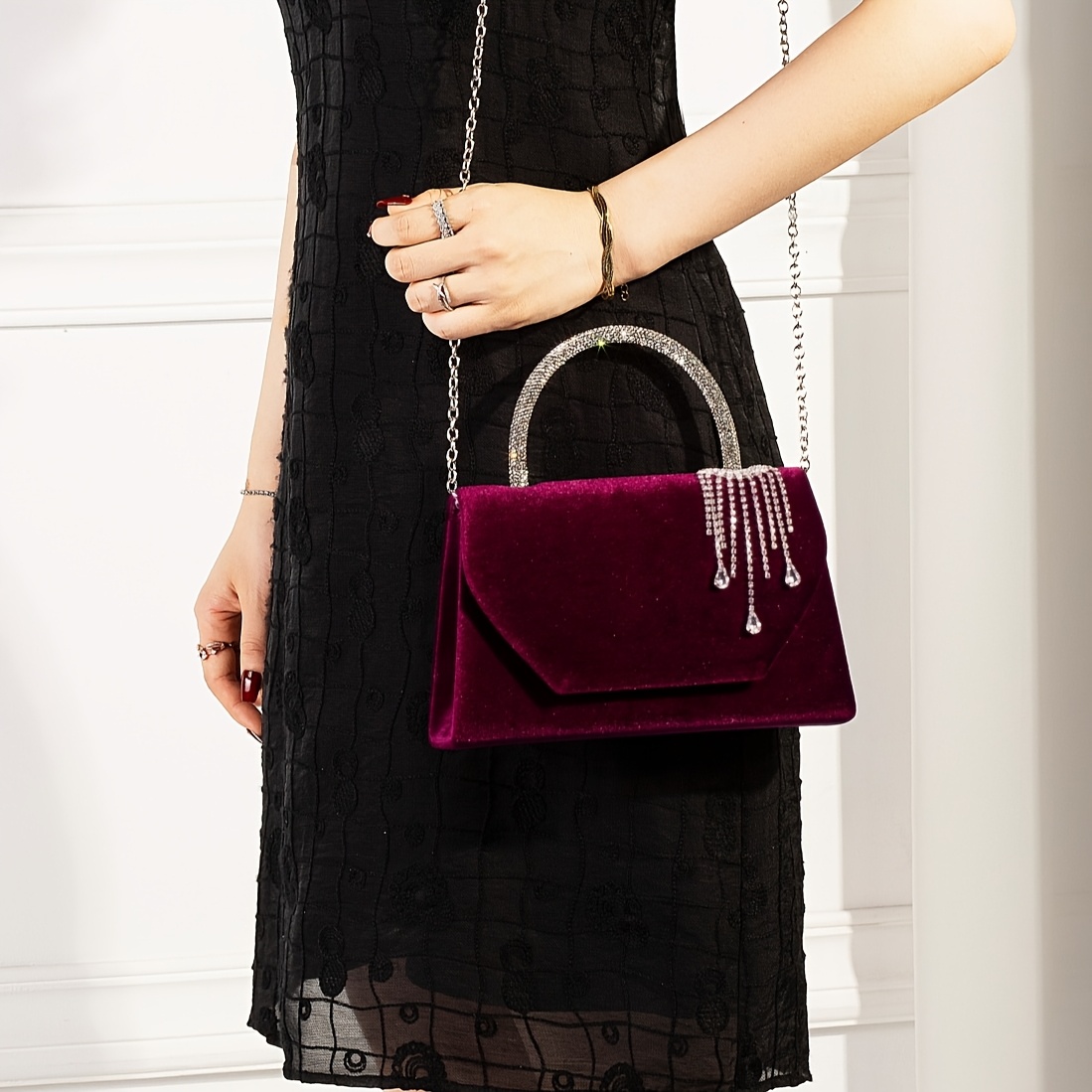 Women's Elegant Rhinestone Evening Handbag & Crossbody Bag with Detachable Chain Strap - Luxury Prom, Wedding, Party Purse in Burgundy/Black - Closure & Lining - Sparkling Clutch for Formal Events, Prom Dress Accessory - Plus