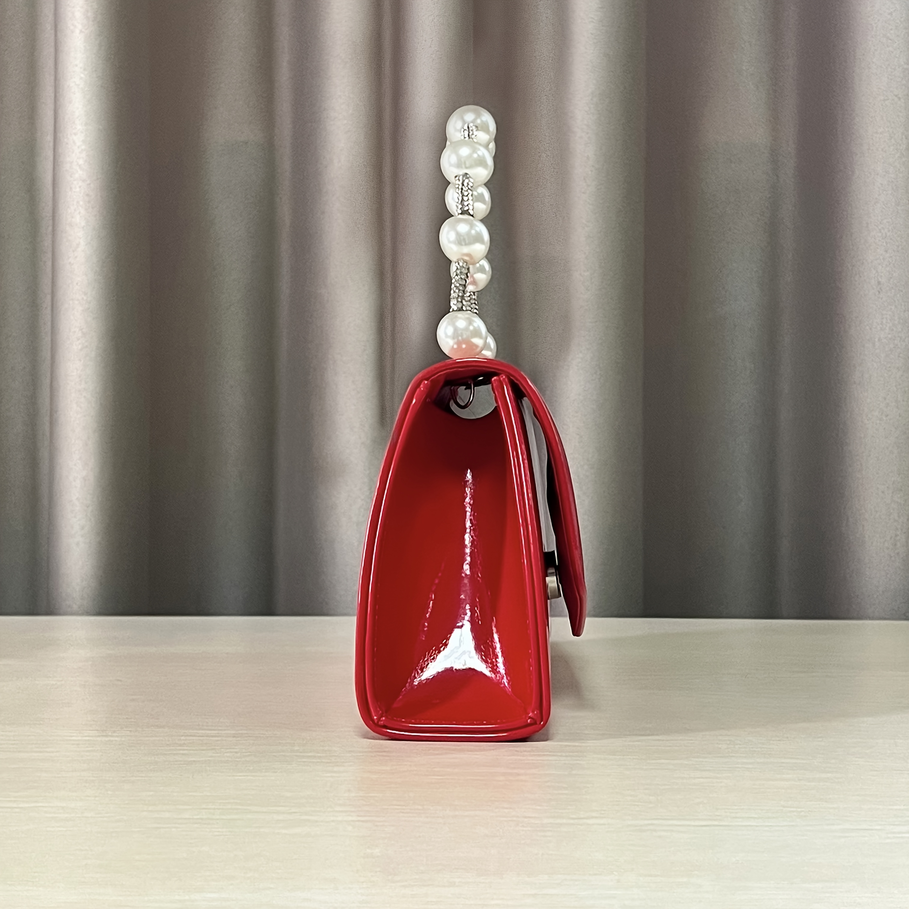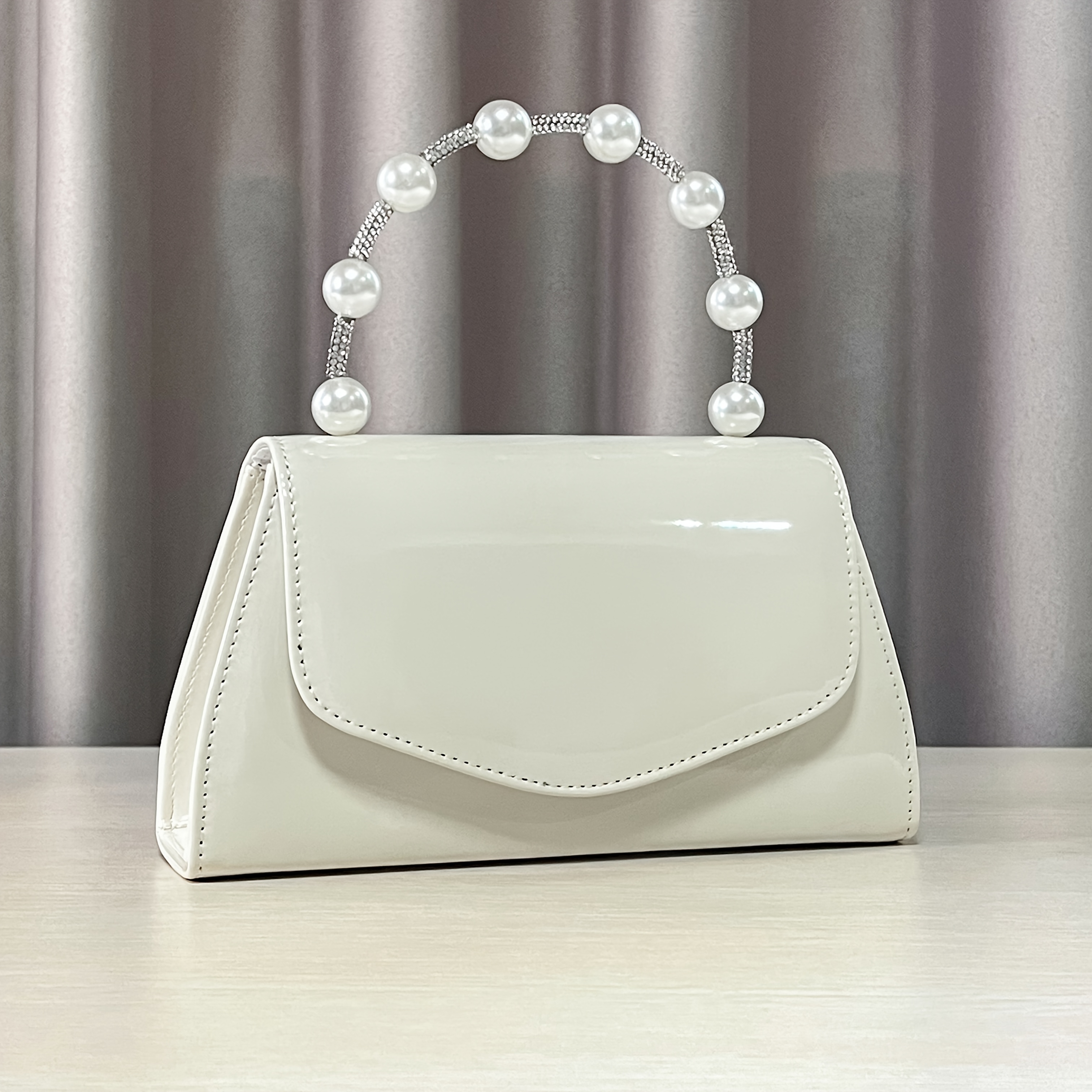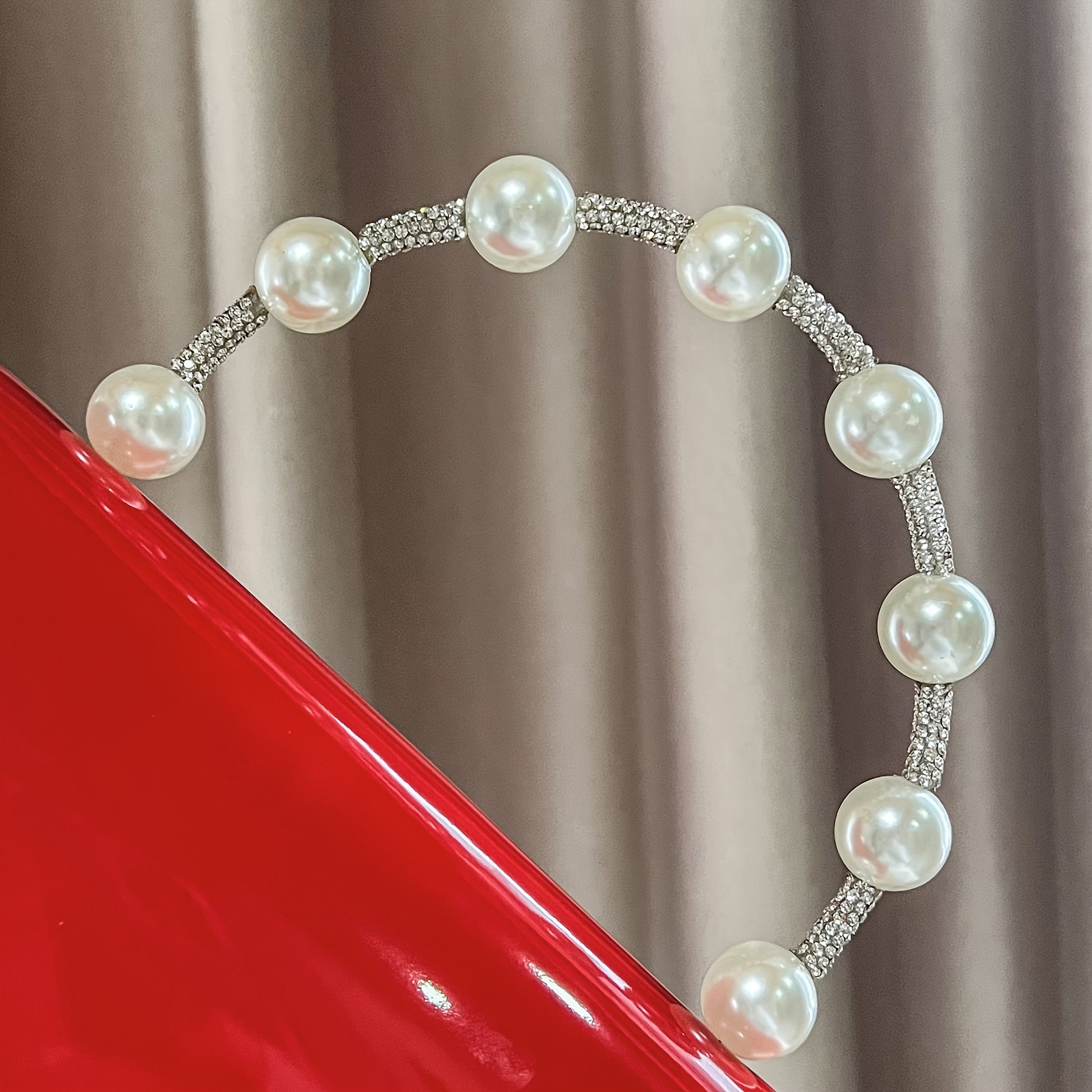 Women's Evening Clutch Purse with Accents - White & Red Luxury Glossy Handbag for Weddings, Parties, Galas - Elegant Bridal Party Accessory